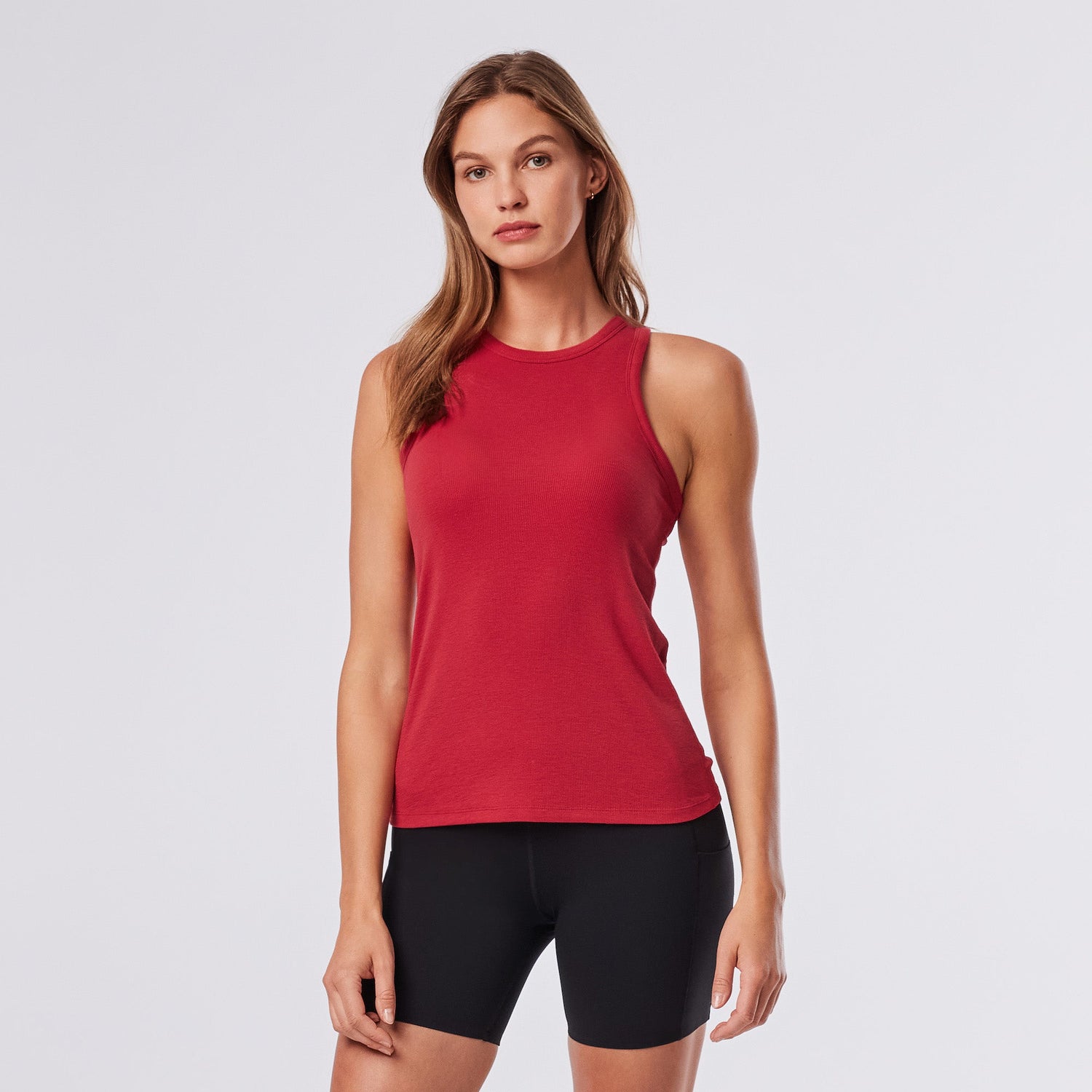 The Perfect Fit Rib Tank elevates your everyday with luxurious Modal Span Rib fabric. Featuring a high crew neck, fitted silhouette, slight racerback, and hip-length fit, this fitted tank delivers the premium feel of TaviLuxe™ with a craveable ribbed texture.